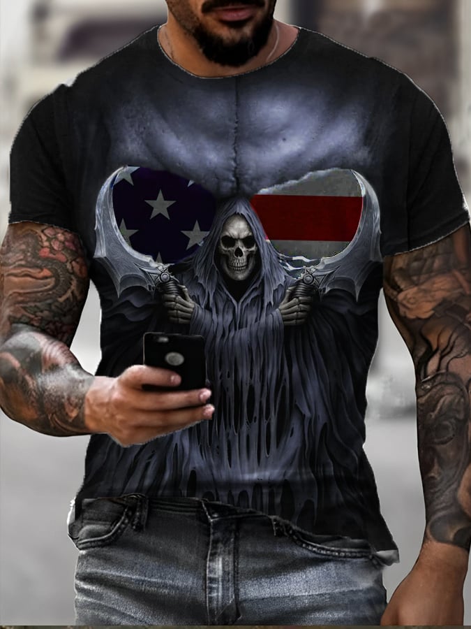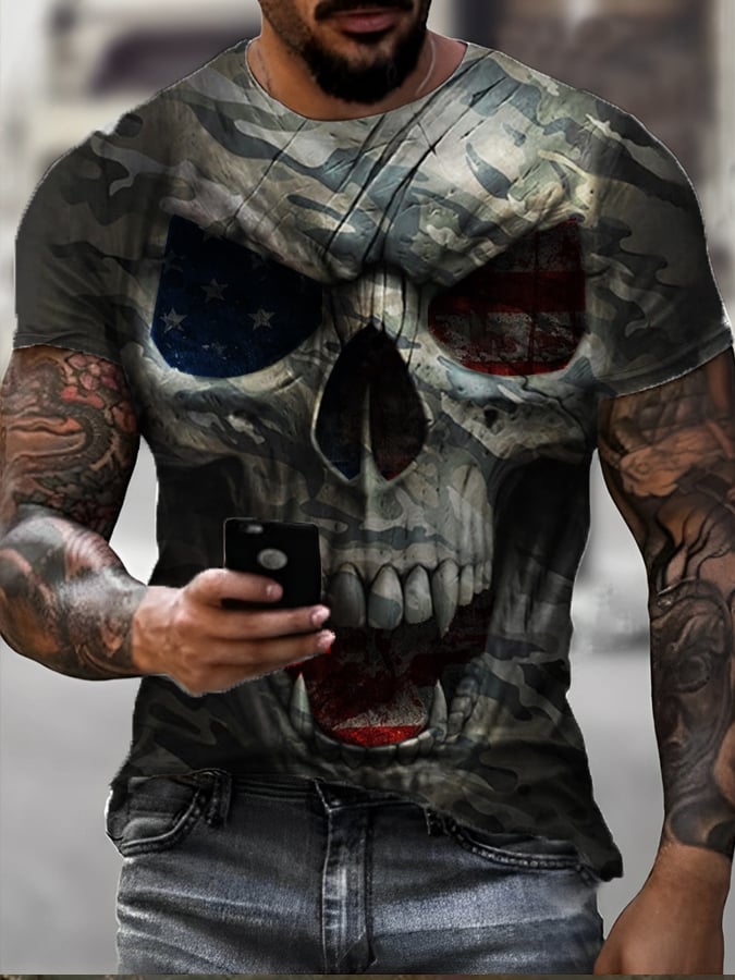 Men's 3D Skull Independence Day Print Casual Short Sleeve T-Shirt