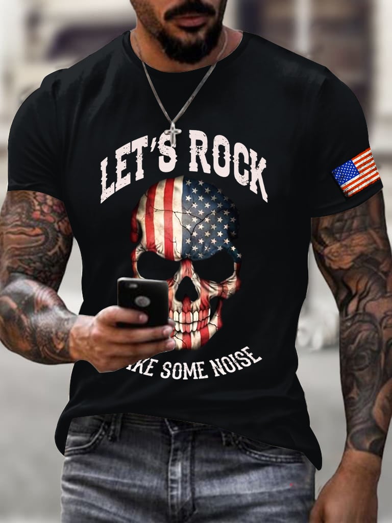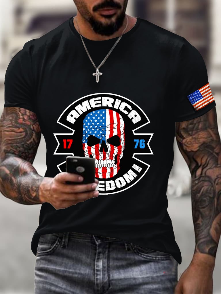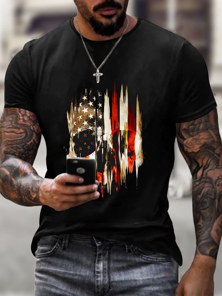 Men's 3D Skull Independence Day Print Casual Short Sleeve T-Shirt