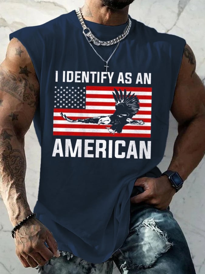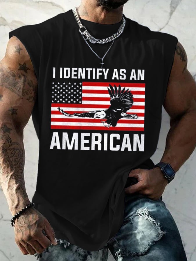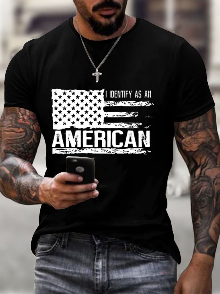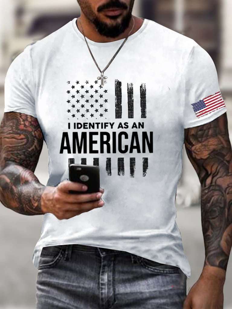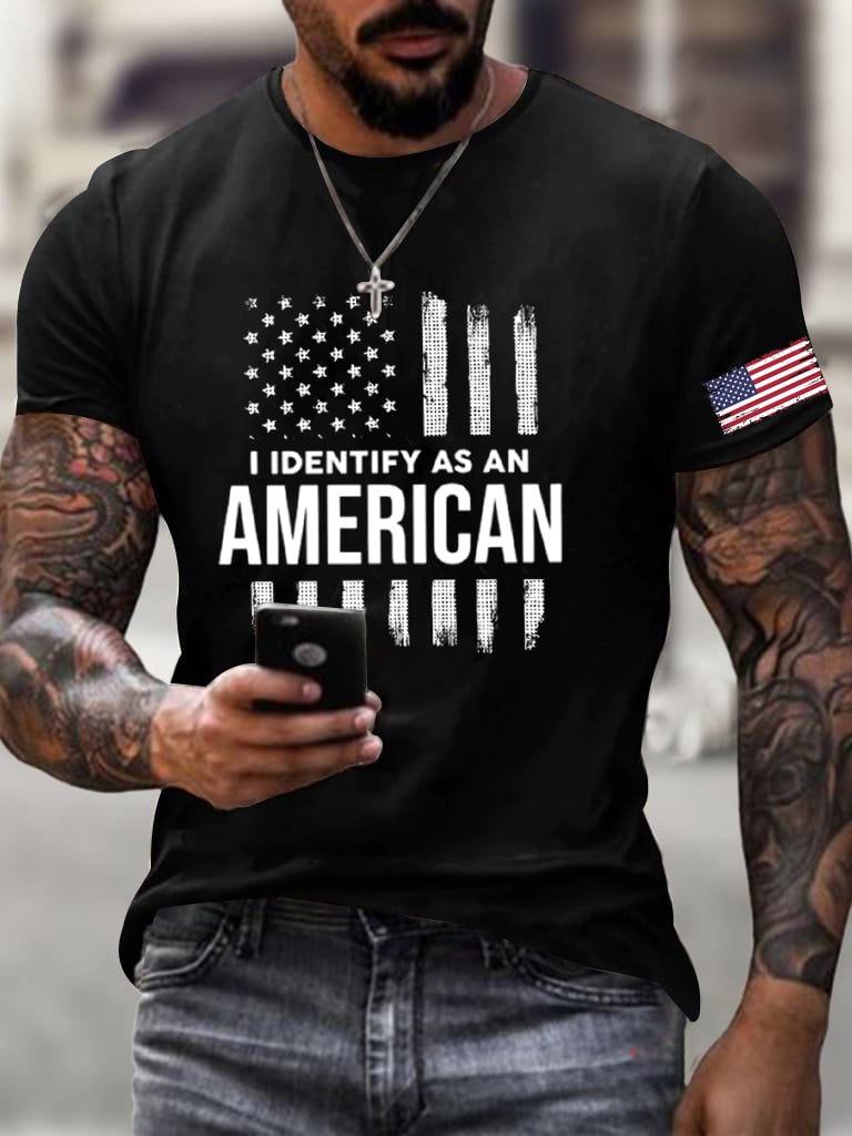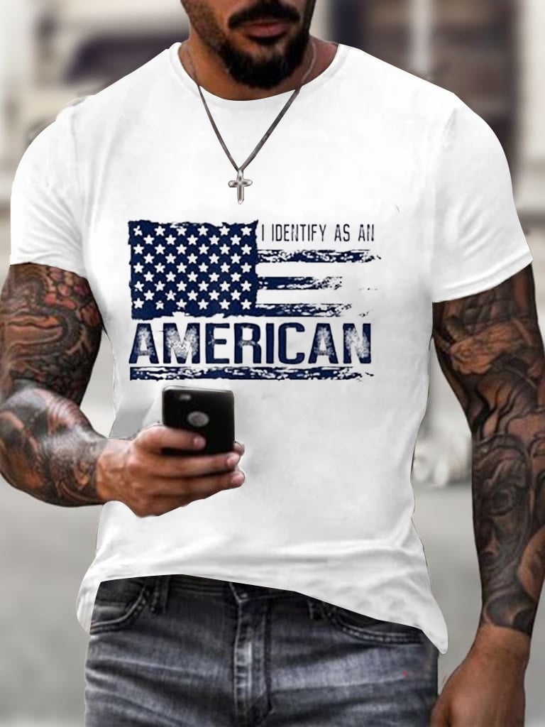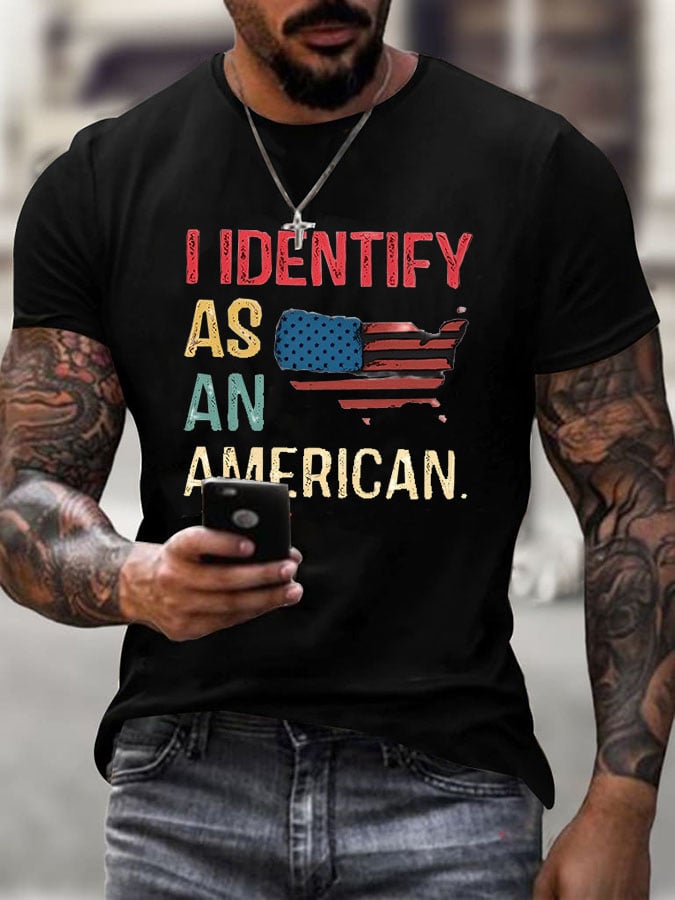 Men's Vintage I Identify As An American Print Round Neck T-Shirt