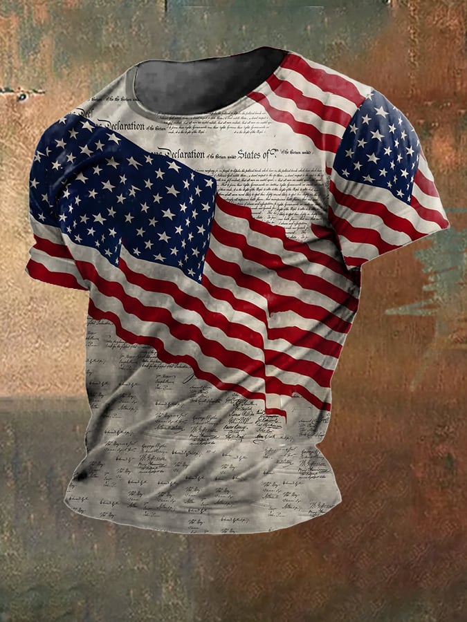 Men's Independence Day Retro Print Crew Neck T-Shirt