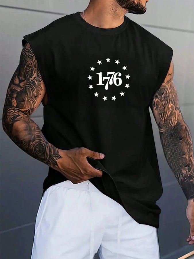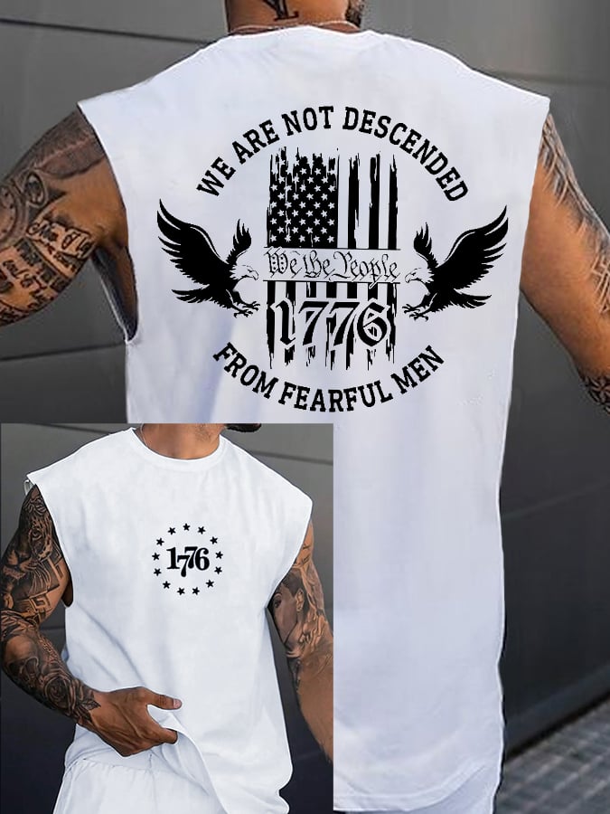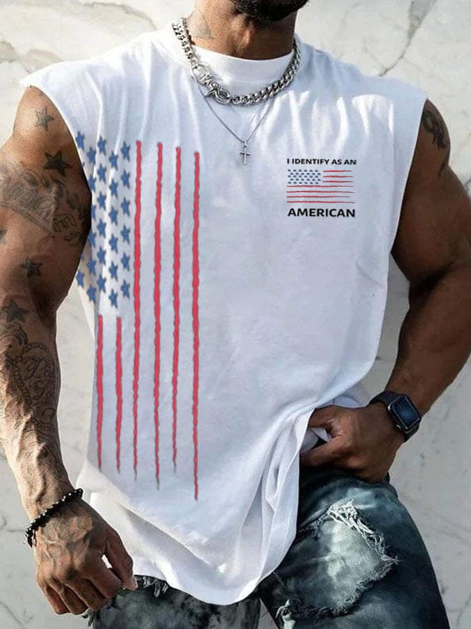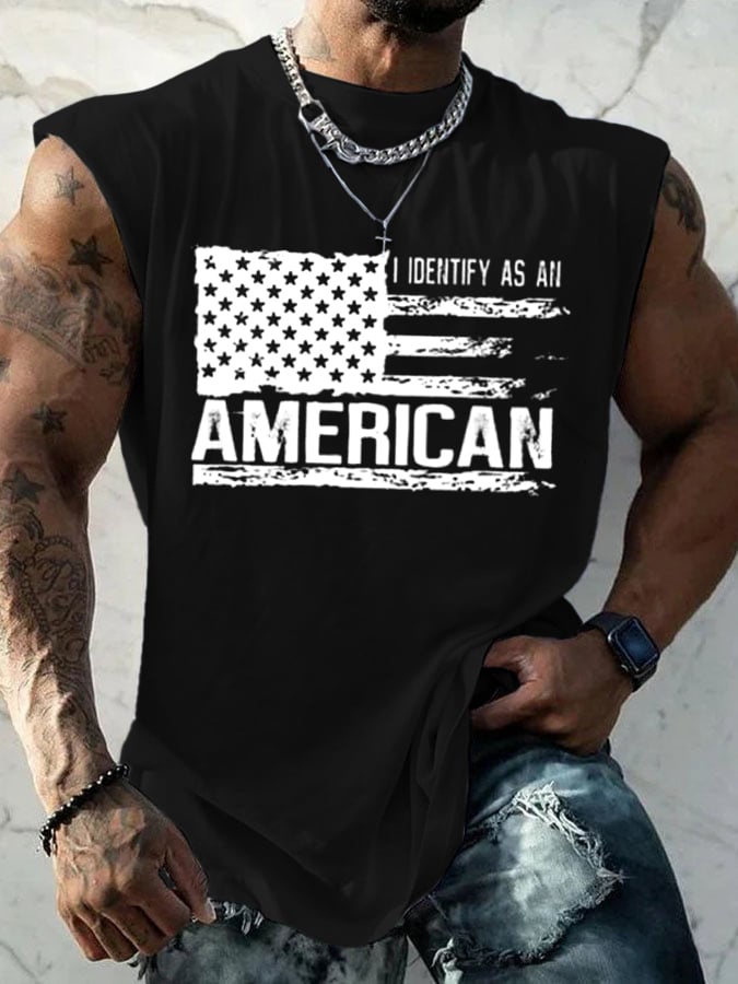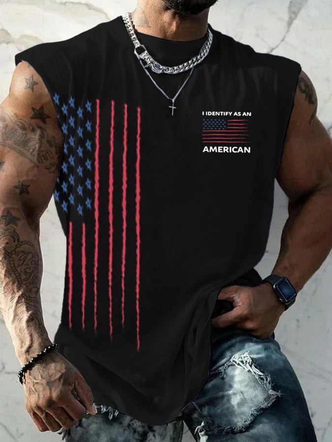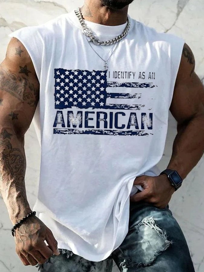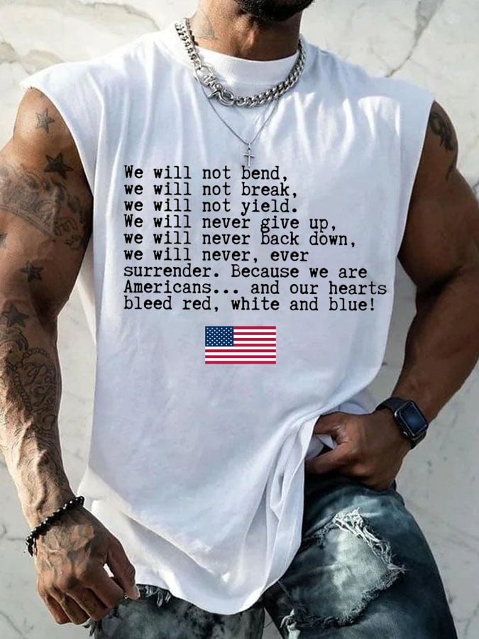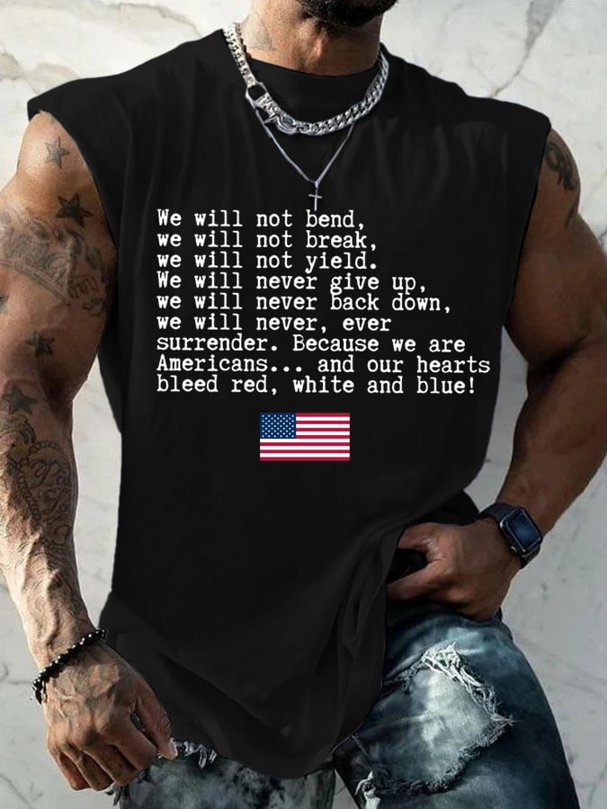 Men's We Will Not Bend Because We Are Americans Print Round Neck Tank Top