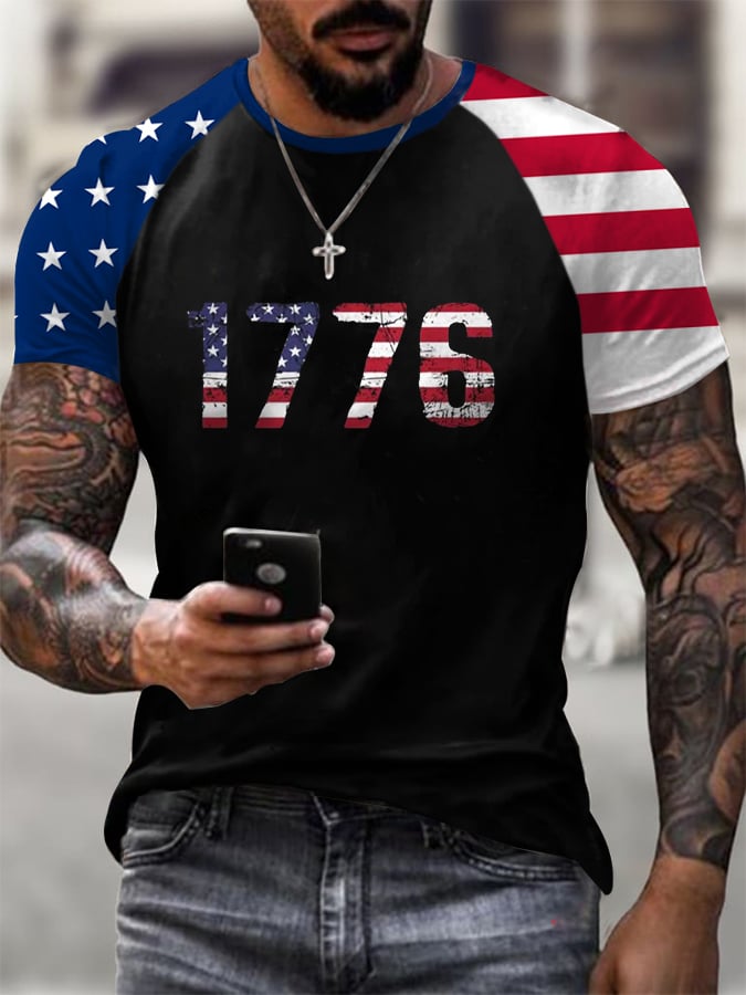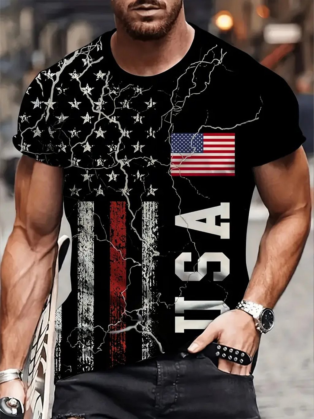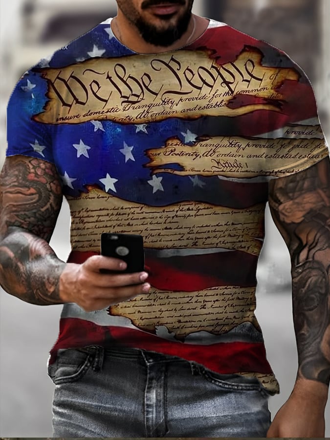 Men's Independence Day Printed Casual Round Neck T-Shirt