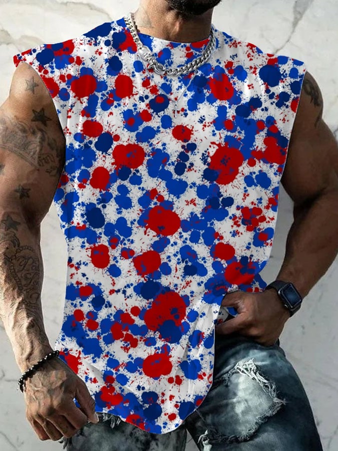 Men's Independence Day Red White Blue Paint Print Casual Tank Top