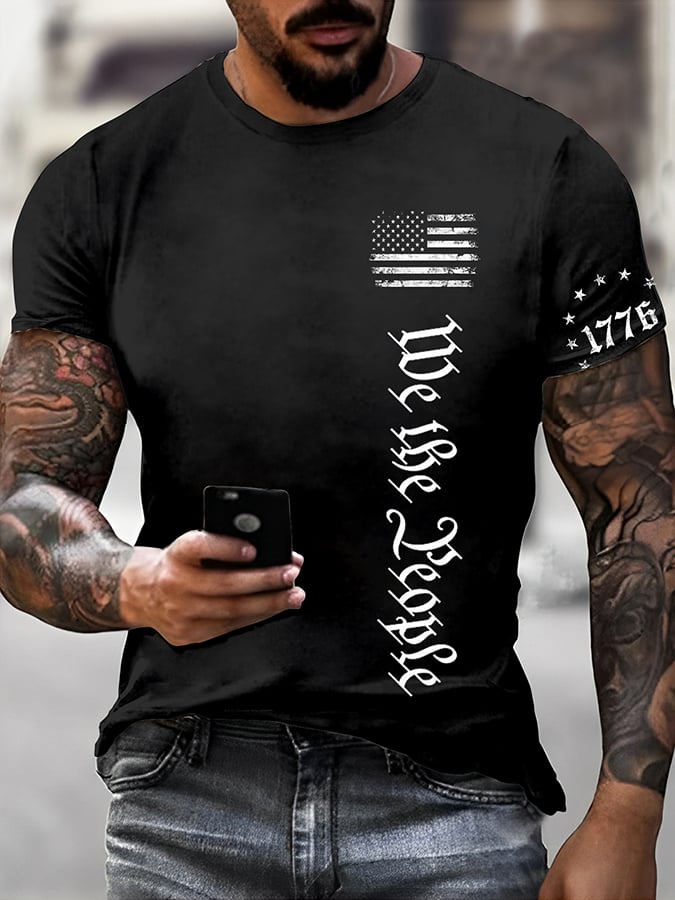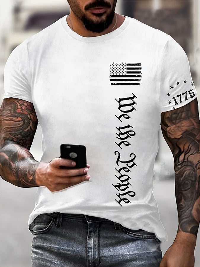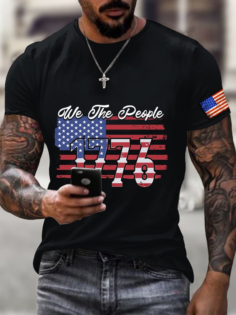 Men's We The People 1776 America Flag Independence Day Casual Tee