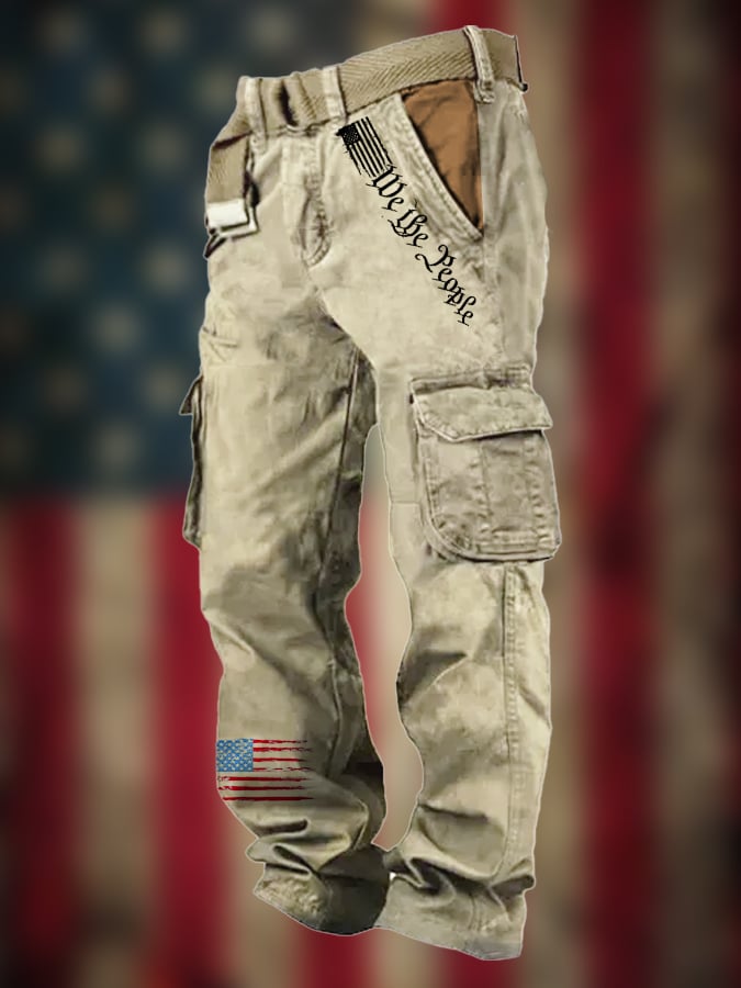 Woven Men's Vintage Versatile Fourth of July Cargo Outdoor Pants