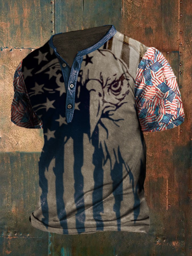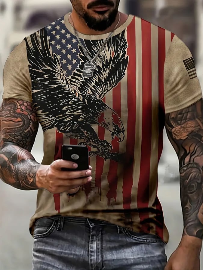 Men's Independence Day American Flag Cool Eagle Print Casual Tee