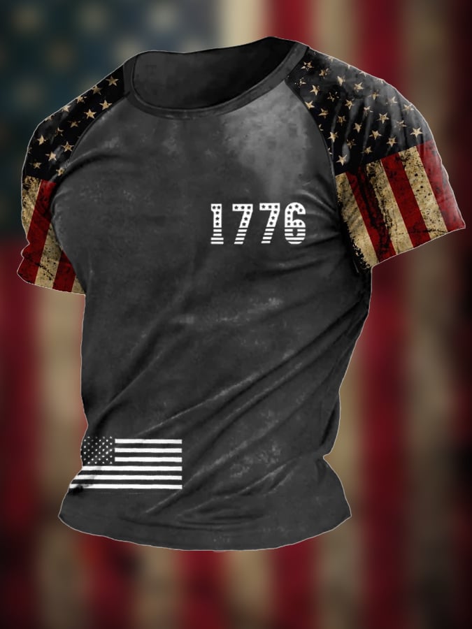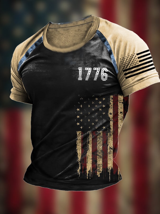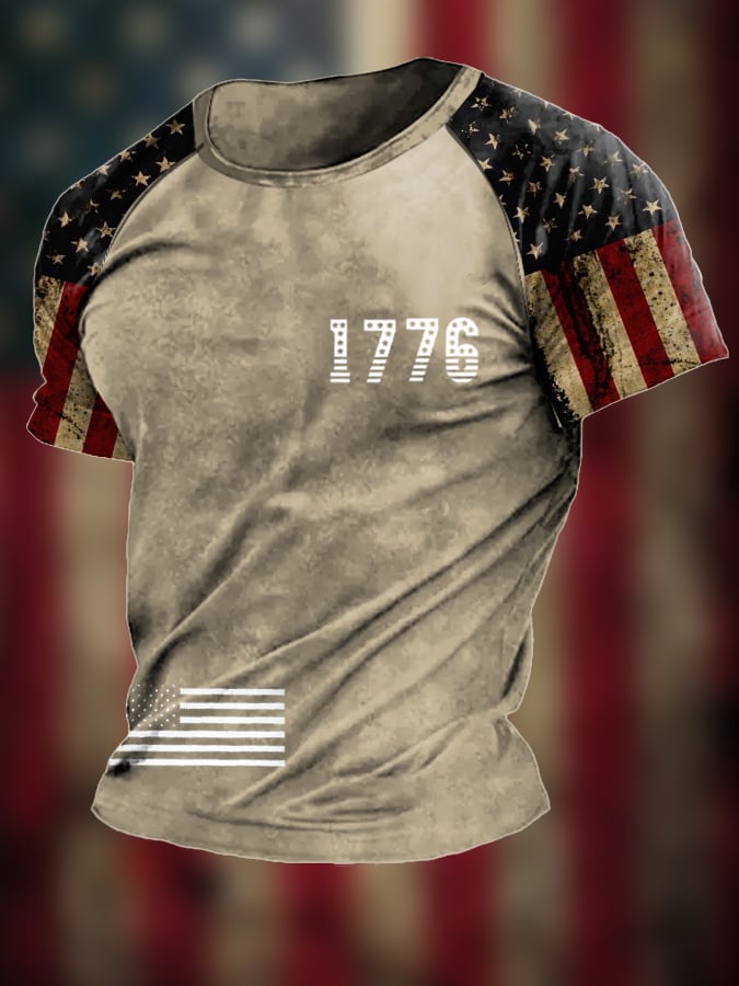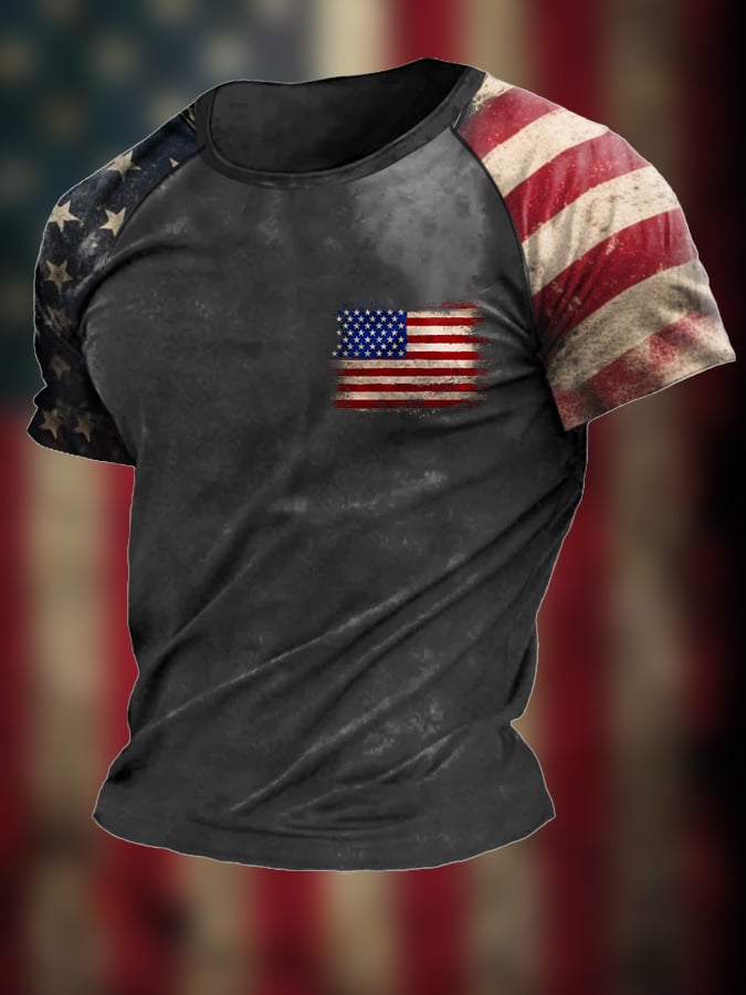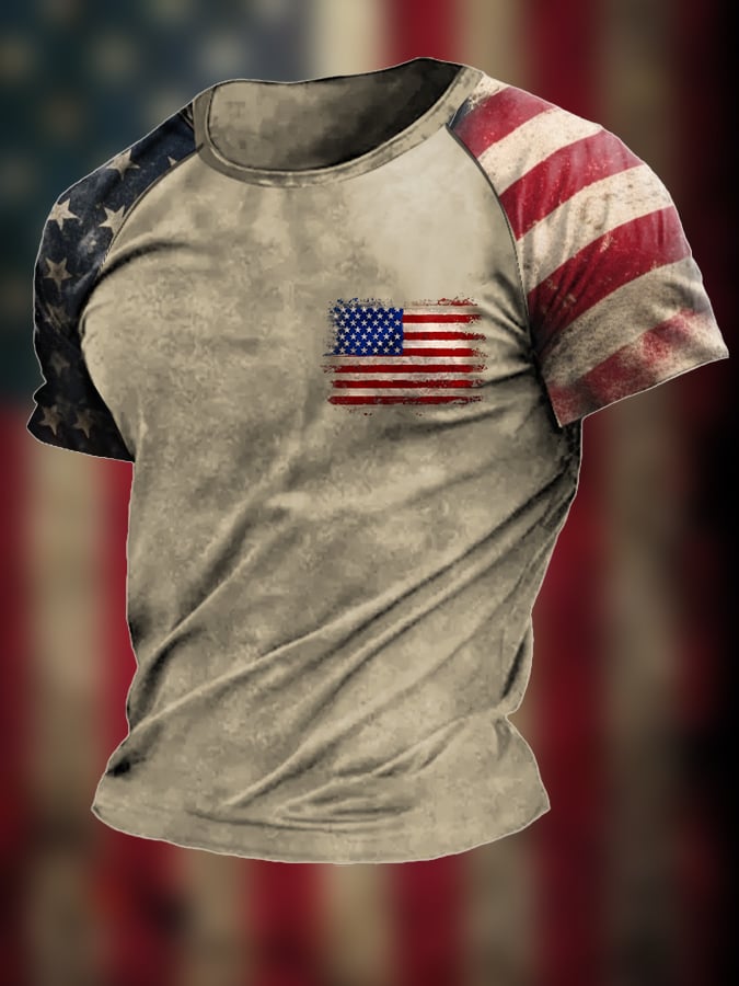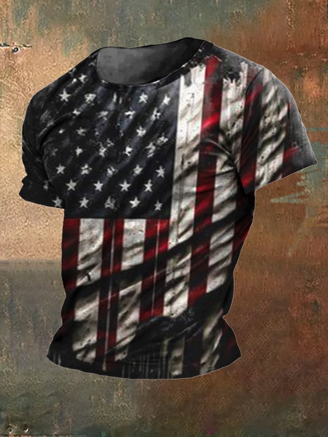 Men's Vintage Flag Independence Day Print Short Sleeve T-Shirt