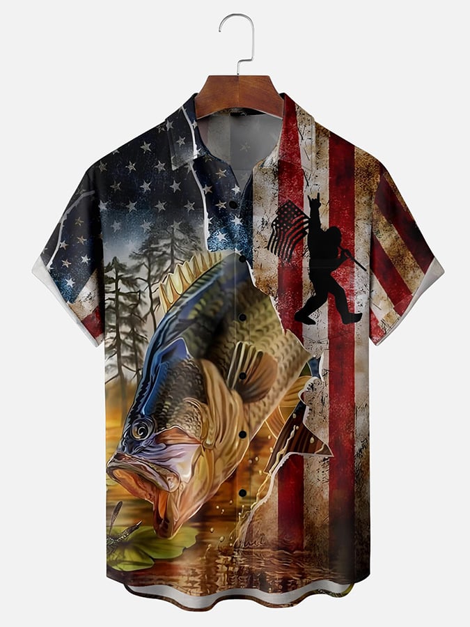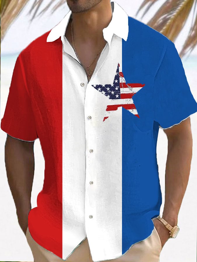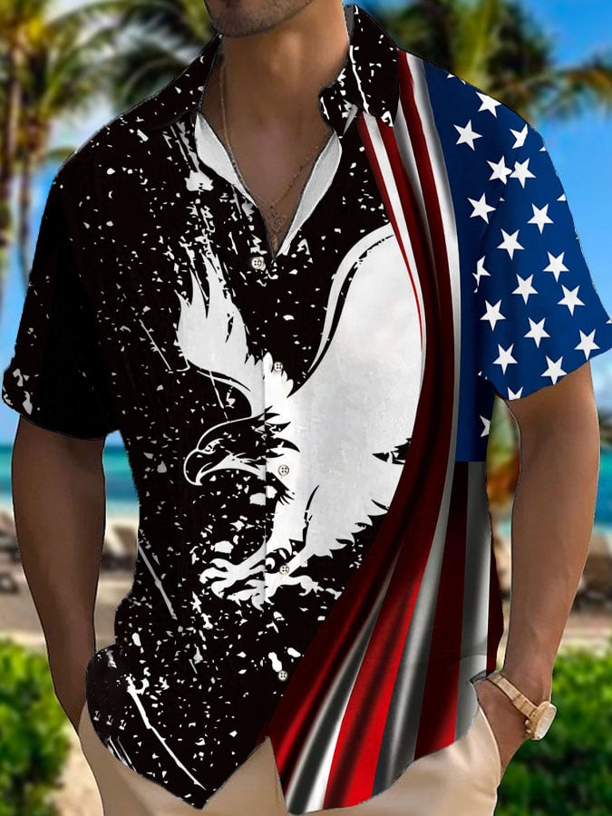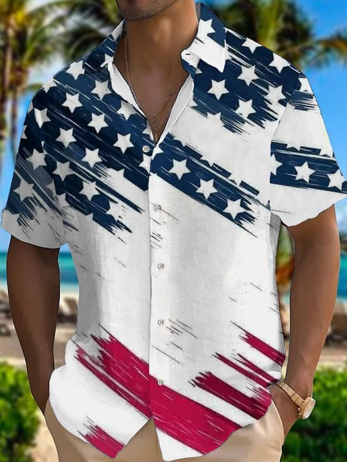 Men's American Flag Hawaiian Casual Printed Shirt