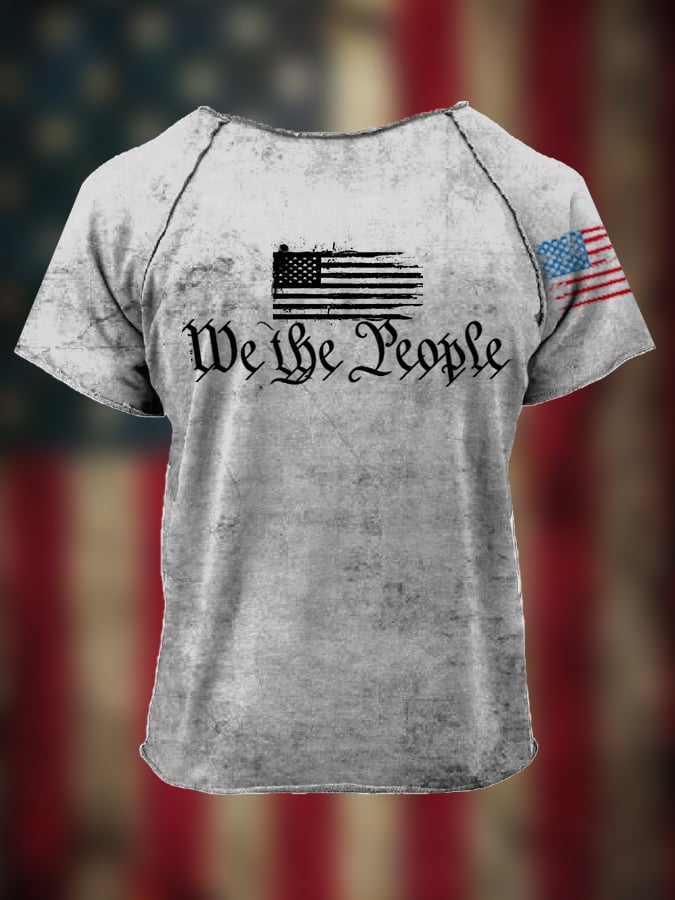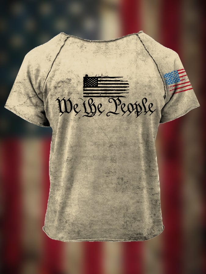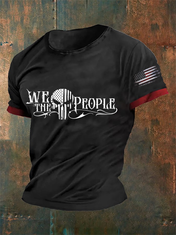 Men's We The People 1776 America Flag Skull Print Independence Day Casual Tee