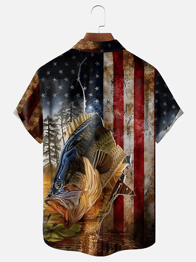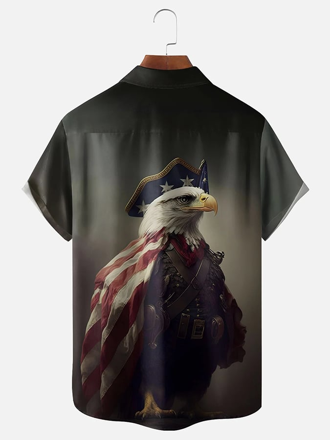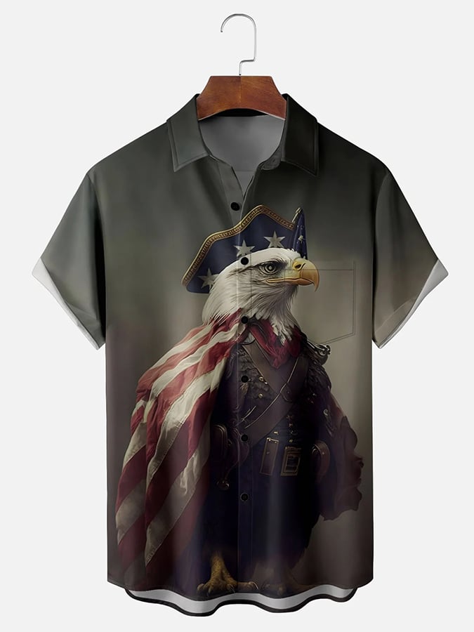 Men's Independence Day Design Casual Pocket Short Sleeve Shirt