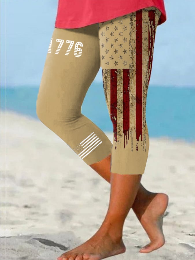 Women's Vintage Flag Independence Day Casual Leggings