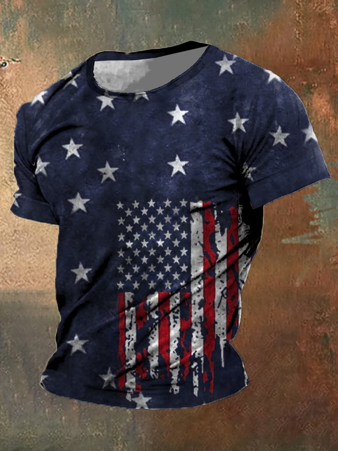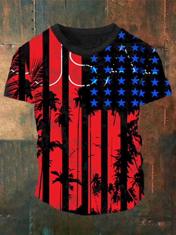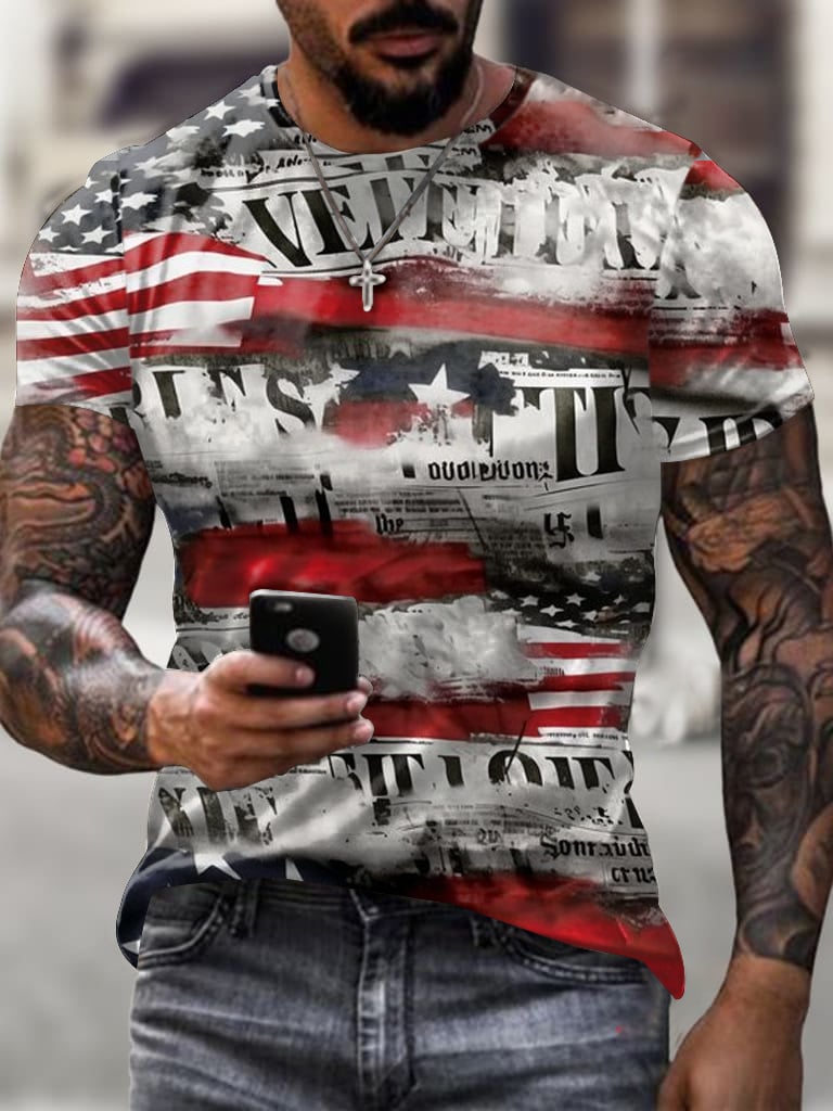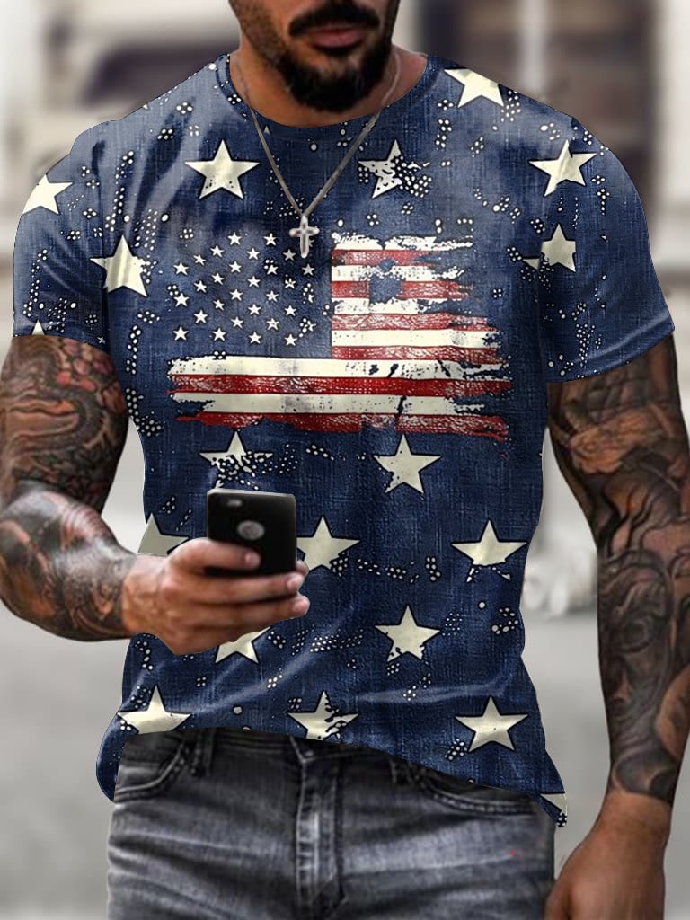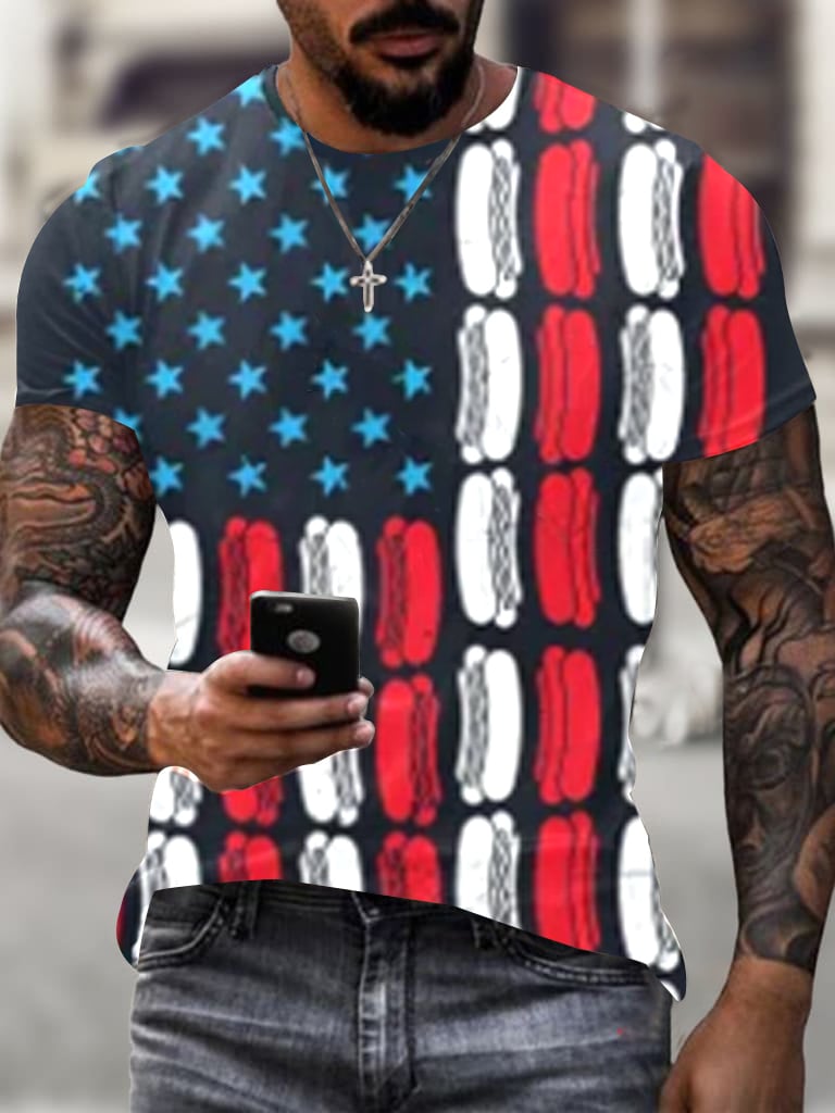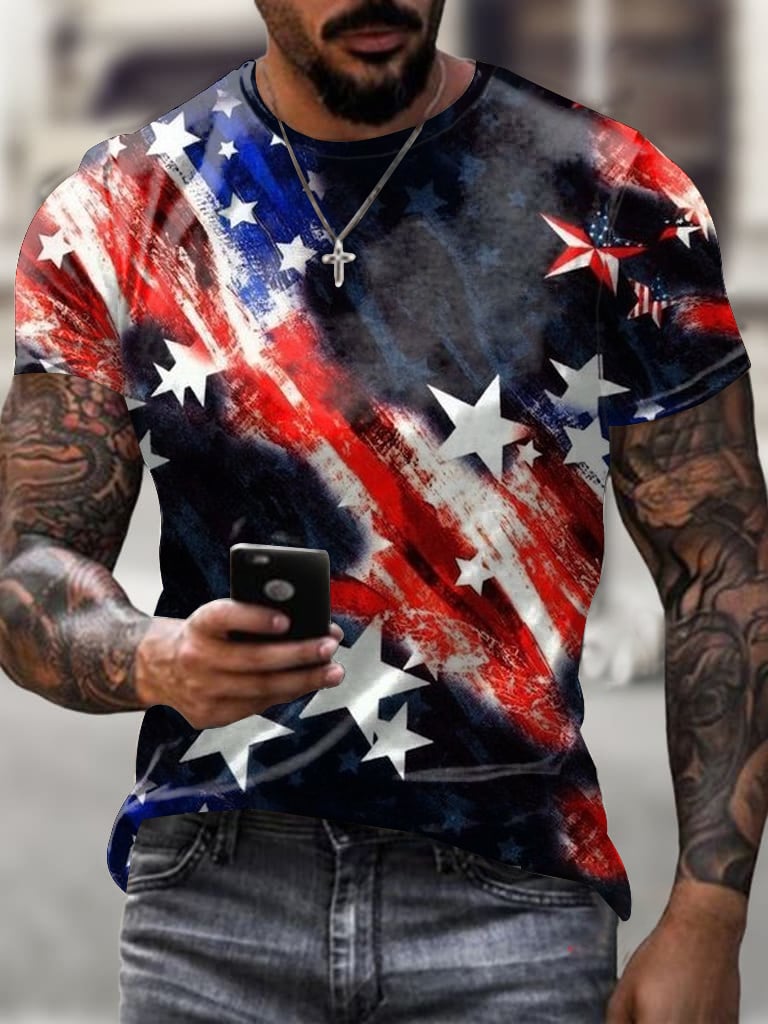 Men's Independence Day Flag Print Short Sleeve T-Shirt