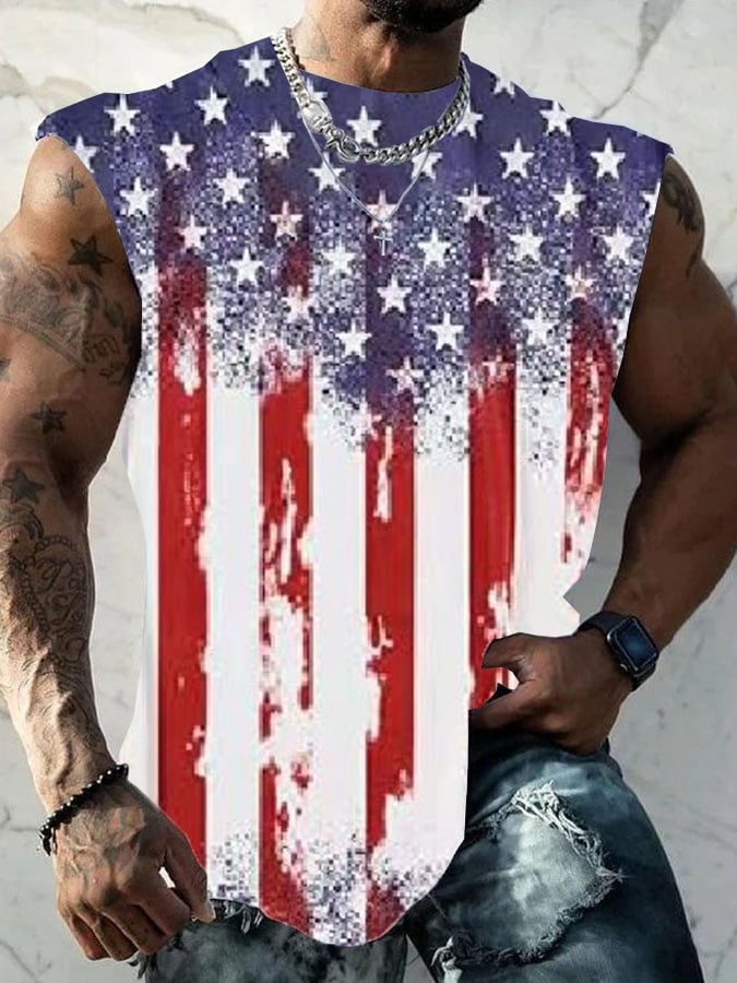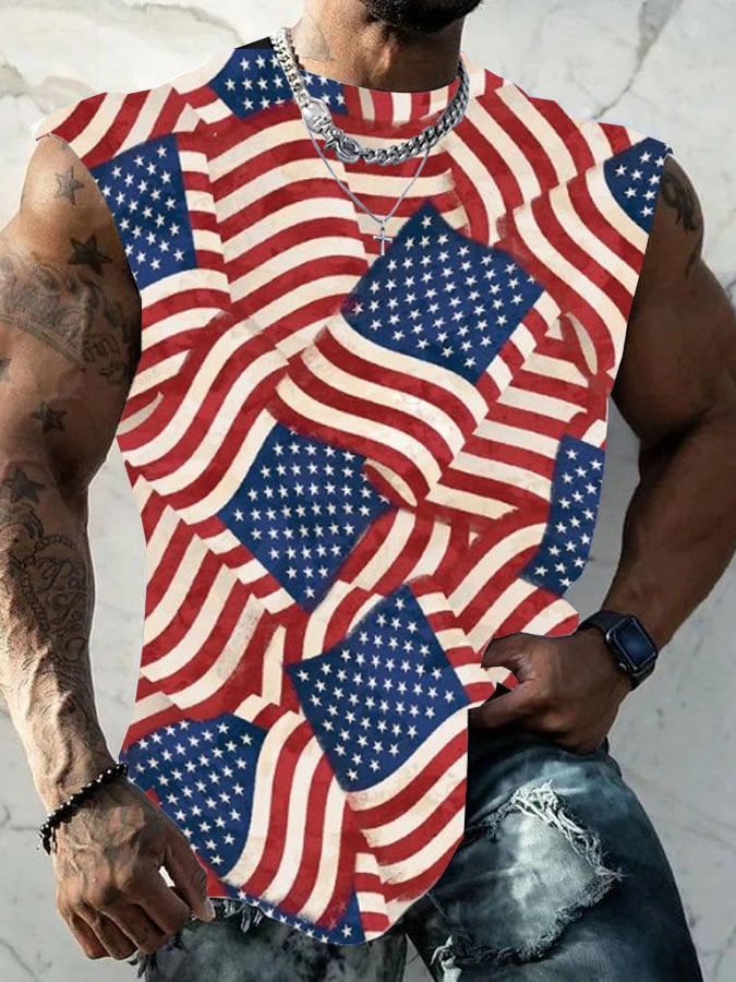 Men's Independence Day Retro Print Crew Neck Vest