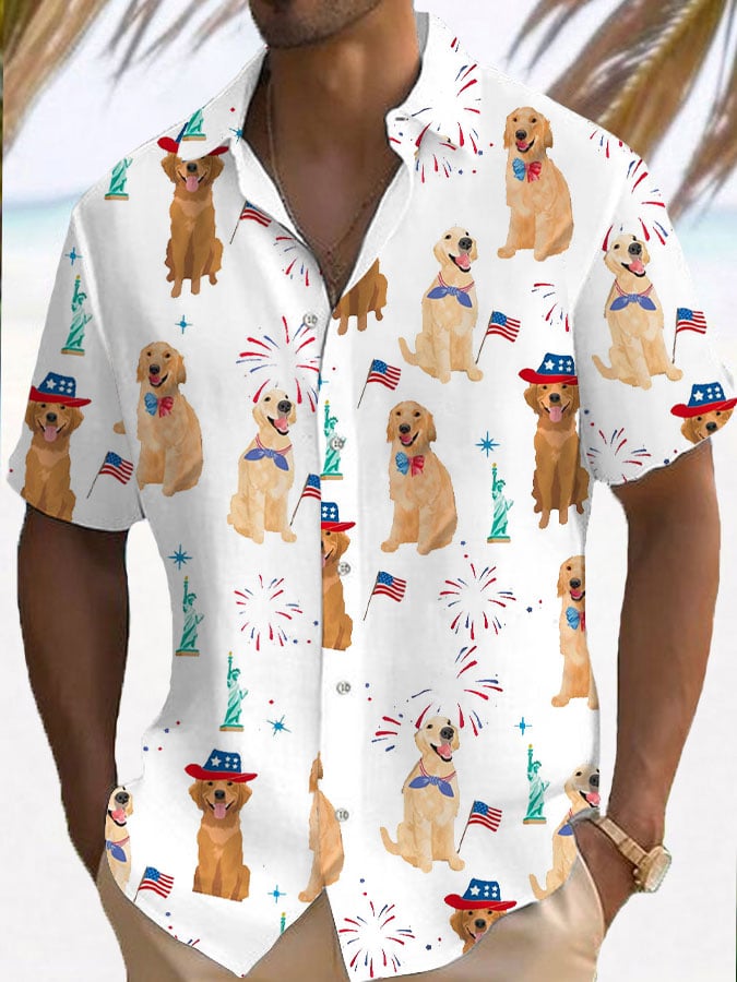 Men's Independence Day Golden Retriever Print Casual Shirt