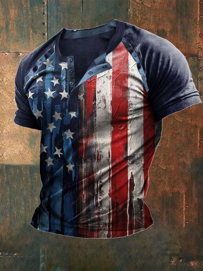 Men's Retro Flag Print Casual Top