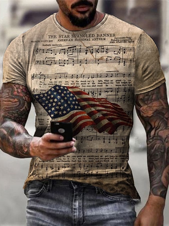 Men's Retro Independence Day American Flag Print Casual Tee