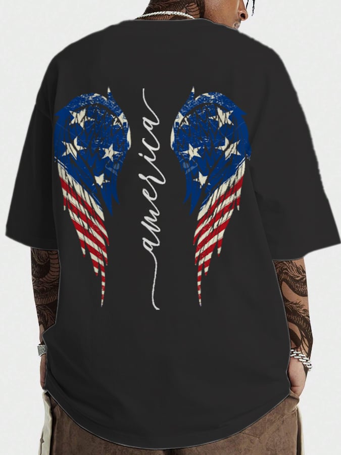 Men's vintage rolled design Independence Day printed short-sleeved T-shirt