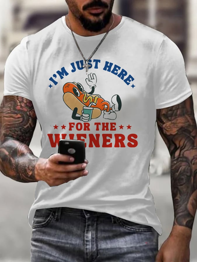 • Men's Independence Day Hot Dog Print Casual Short Sleeve T-Shirt