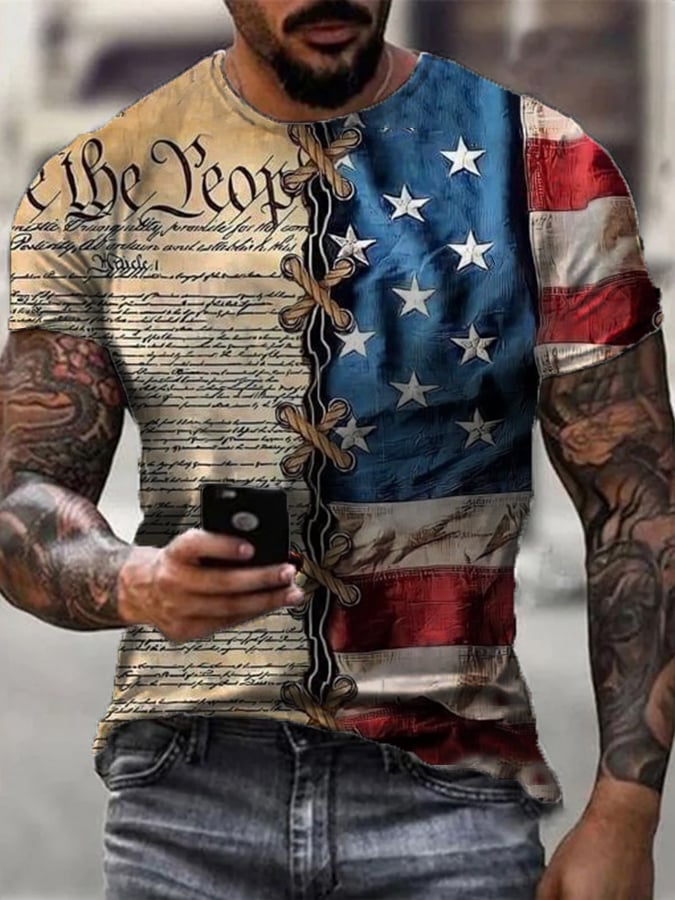 Men's Vintage American Flag Declaration of Independence Print T-Shirt